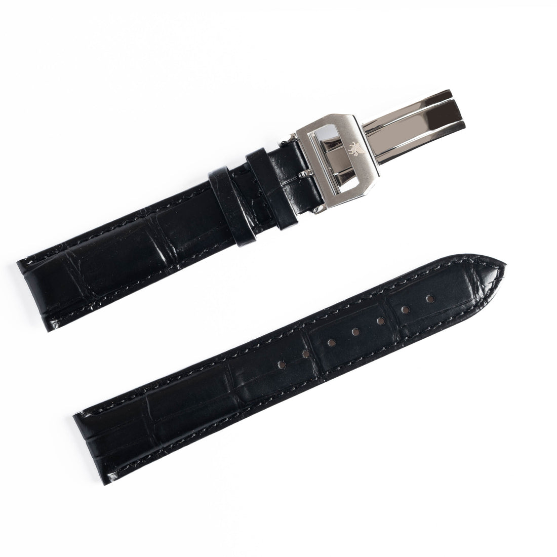 Onyx Black Italian Suede Leather Strap w/ Butterfly Buckle