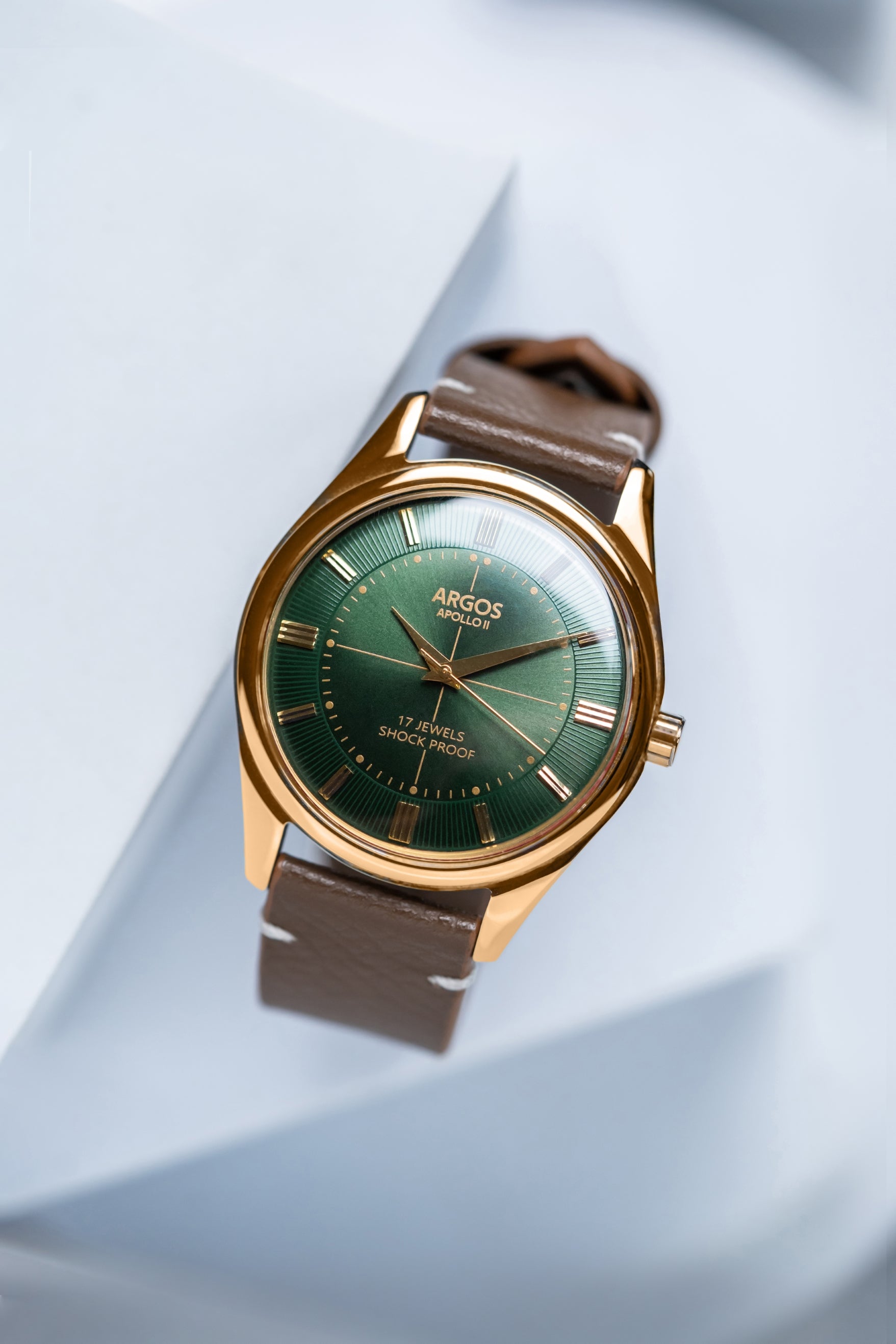The Argos Apollo II was our legacy model featuring unique dial colors and a Revisited FHF ST-96 Swiss Movement.