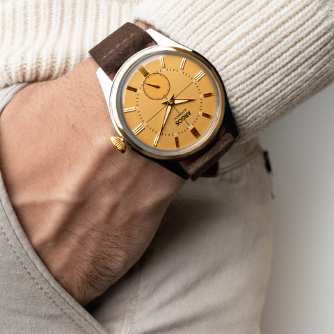 Apollo III was designed for that exact second when the day turns to momentum. We started with the sun - warm tones, long shadows and built a dial that feels alive as light moves across it. The small-seconds is a heartbeat, the indices a measured cadence. It’s modern, but it remembers: classic curves, honest finishing, no gimmicks. Apollo III isn’t loud; it’s inevitable. The one you reach for without thinking, and then keep reaching for.