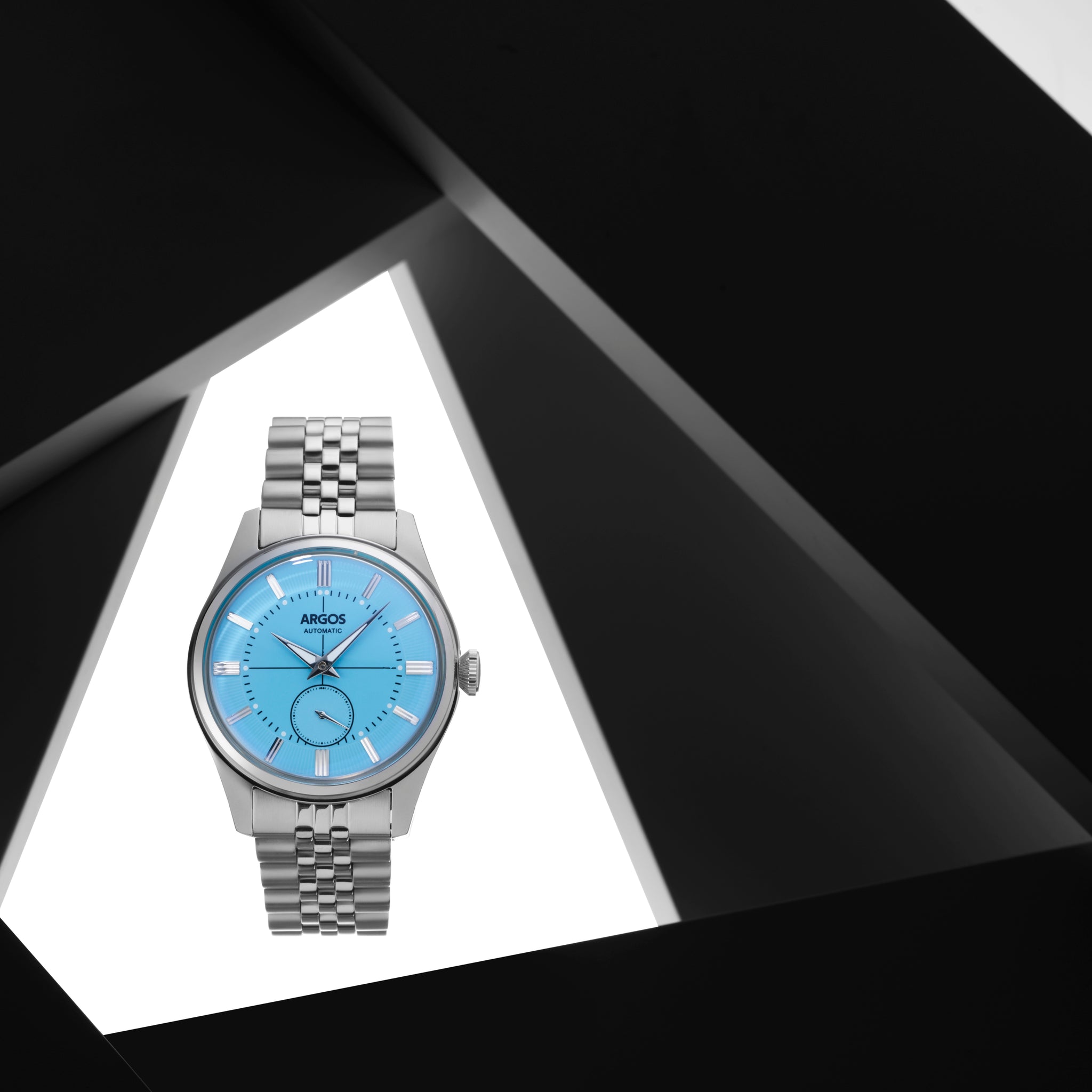 The Argos Apollo III elevates your everyday elegance. Its automatic movement ensures effortless precision, while the vibrant neo-vintage dial and luminous accents captivate the eye. The Italian suede strap with the butterfly buckle or the 5 Row Solid Link Jubilee Bracelet offer a touch of timeless sophistication, complemented by the virtually scratch-proof sapphire coated crystal.