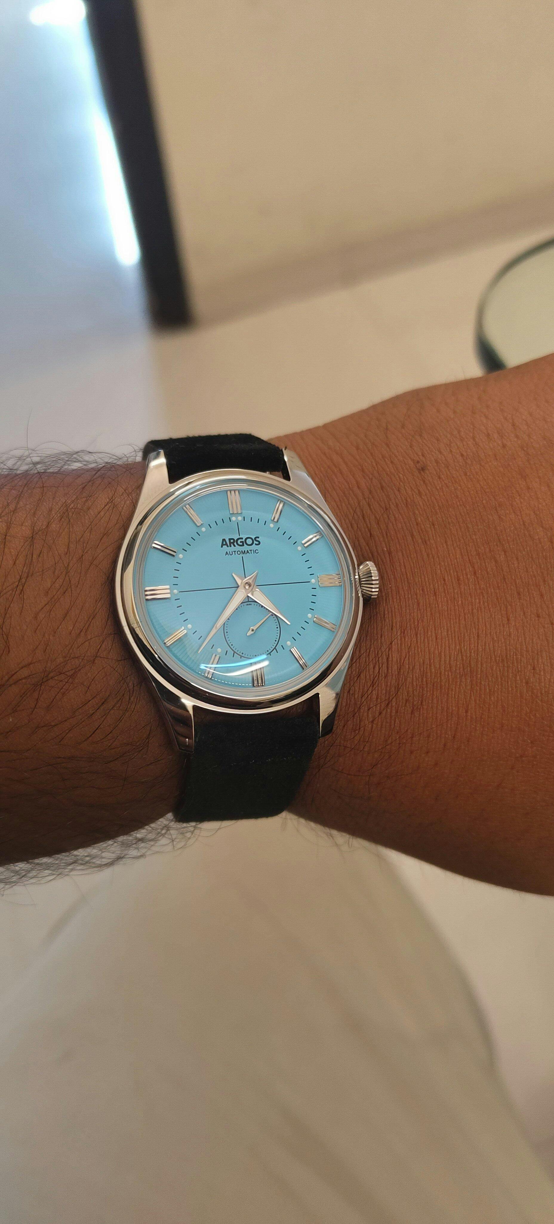 The Argos Apollo III elevates your everyday elegance. Its automatic movement ensures effortless precision, while the vibrant sunburst dial and luminous accents captivate the eye. The Italian suede strap with the butterfly buckle or the 5 Row Solid Link Jubilee Bracelet offer a touch of timeless sophistication, complemented by the virtually scratch-proof sapphire coated crystal.