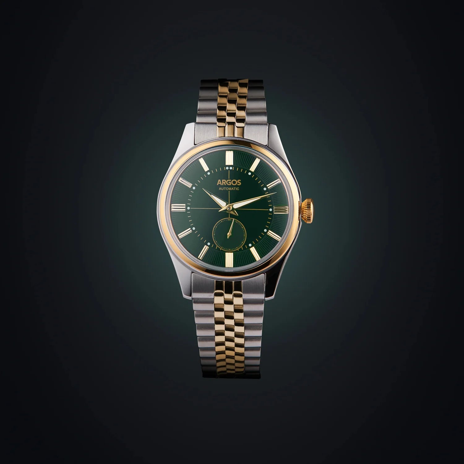The Argos Apollo III elevates your everyday elegance. Its automatic movement ensures effortless precision, while the vibrant neo-vintage dial and luminous accents captivate the eye. The Italian suede strap with the butterfly buckle or the 5 Row Solid Link Jubilee Bracelet offer a touch of timeless sophistication, complemented by the virtually scratch-proof sapphire coated crystal.