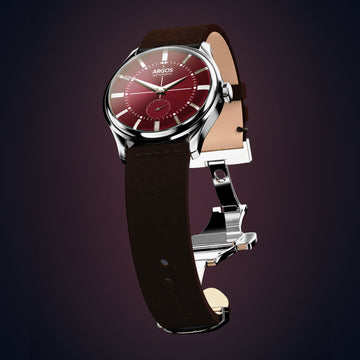 The Argos Apollo III elevates your everyday elegance. Its automatic movement ensures effortless precision, while the vibrant neo-vintage dial and luminous accents captivate the eye. The Italian suede strap with the butterfly buckle or the 5 Row Solid Link Jubilee Bracelet offer a touch of timeless sophistication, complemented by the virtually scratch-proof sapphire coated crystal.