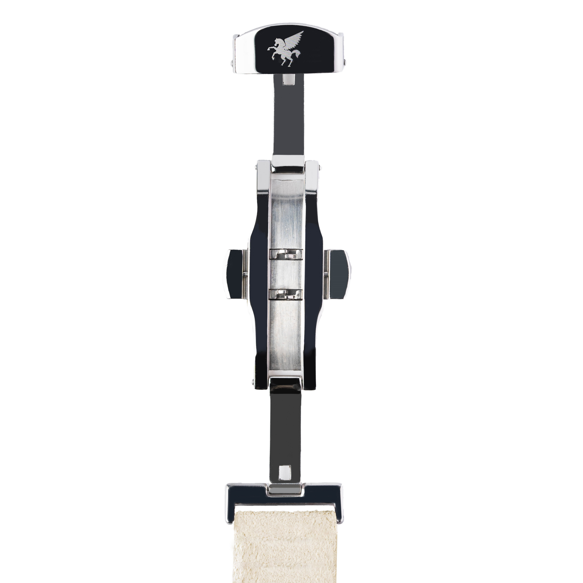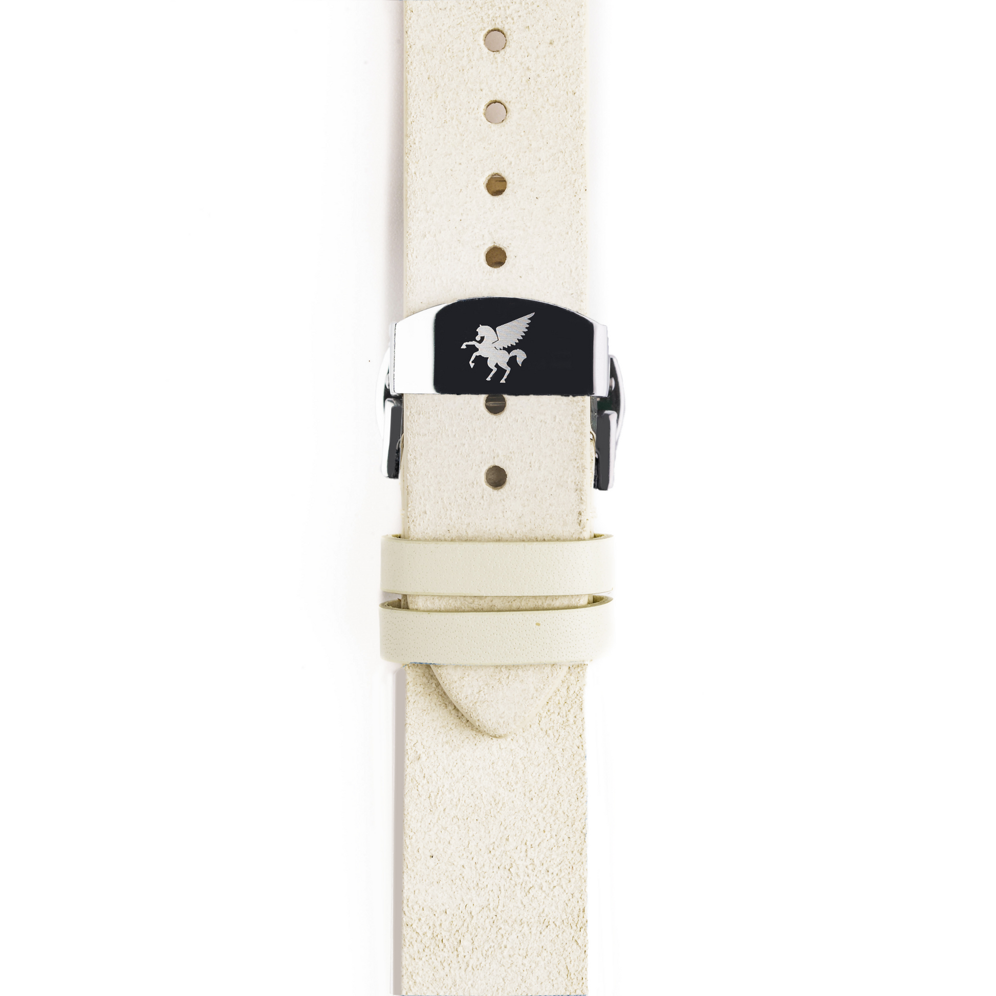 Ivory White Italian Suede Leather Strap w/ Butterfly Buckle