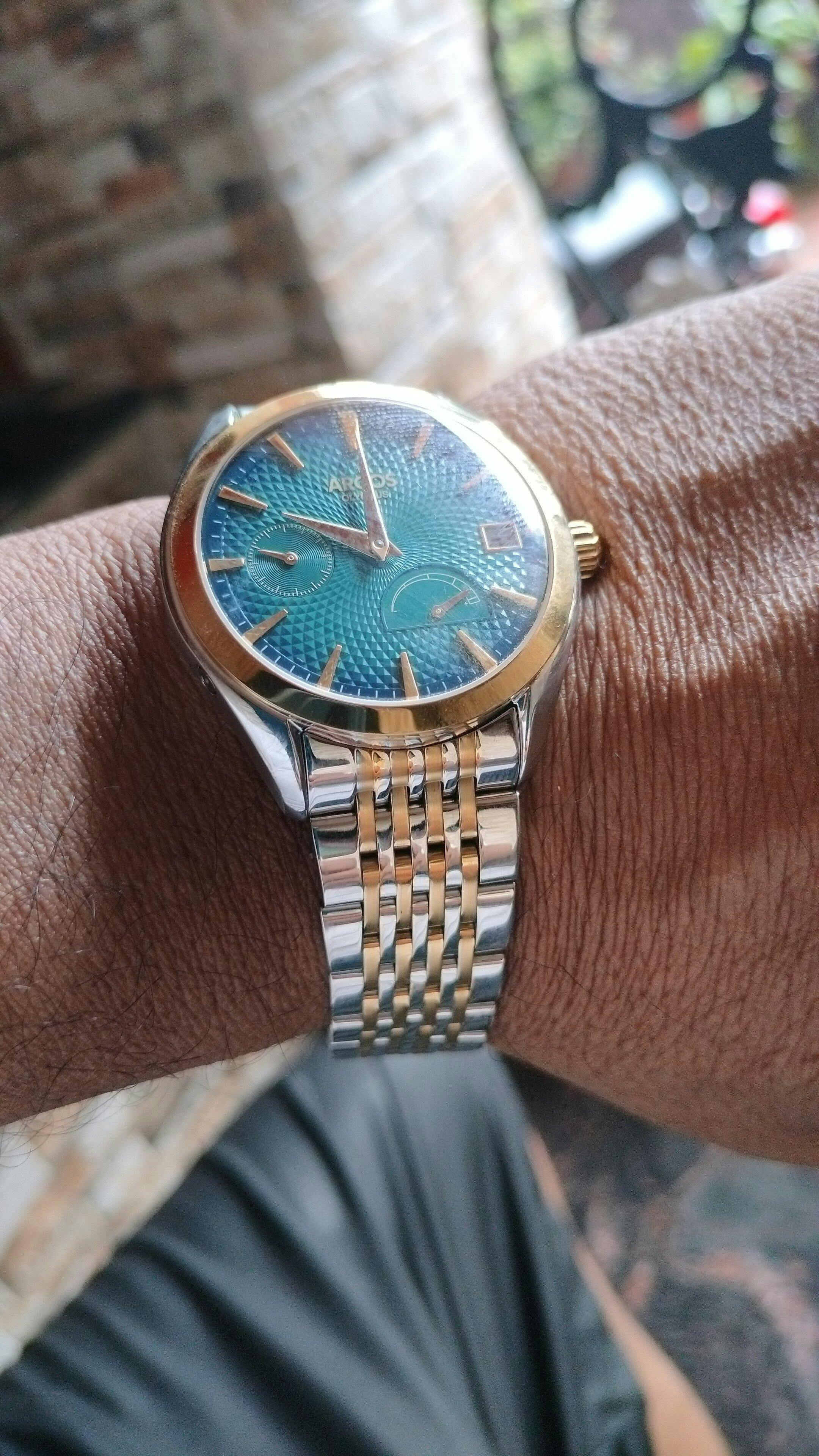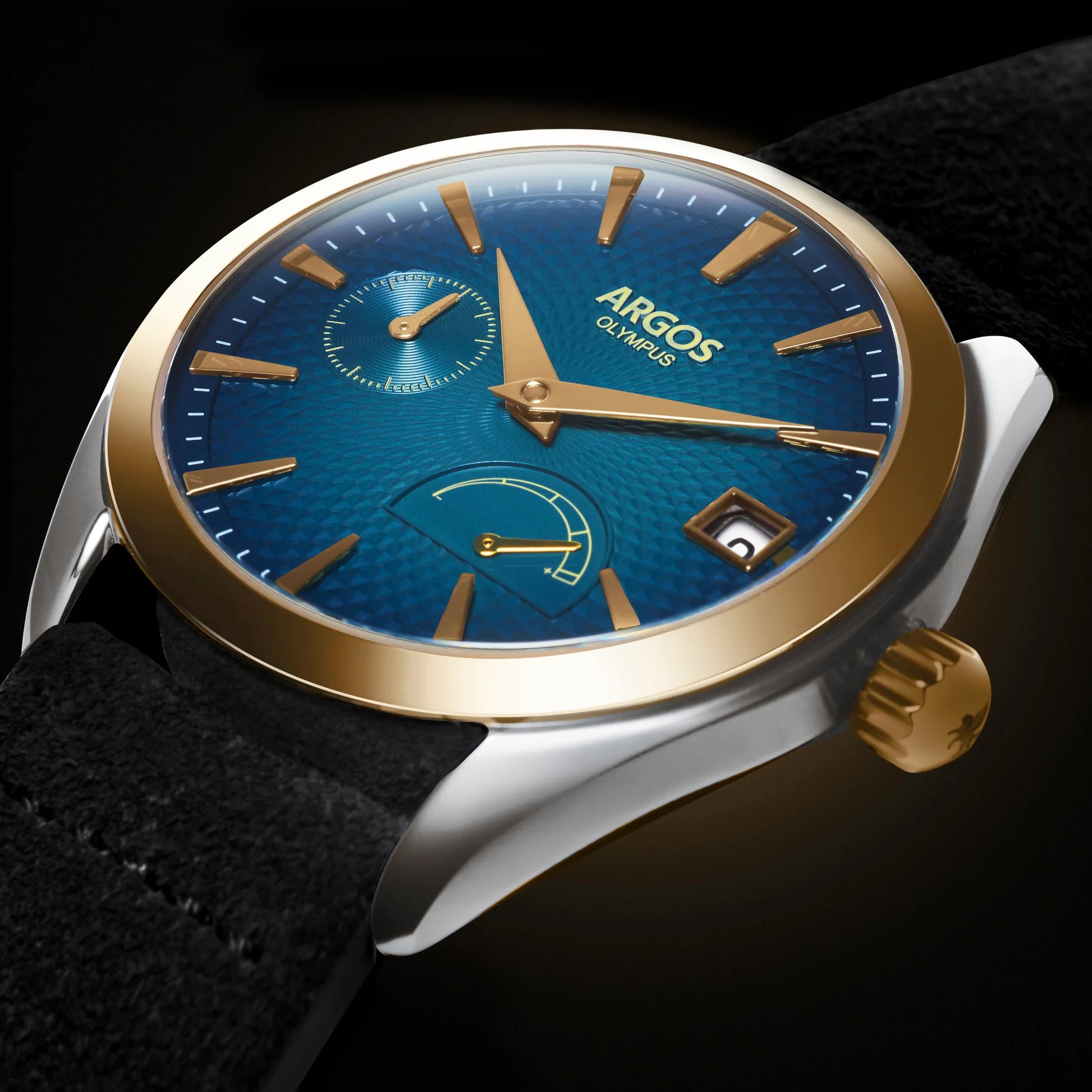 The Argos Olympus fuses refined style with mechanical heart - housed in a 316L stainless steel case, sporting a stunning textured dial, and a nine-row solid-link bracelet or an Italian Suede Leather Strap that radiates quiet luxury.