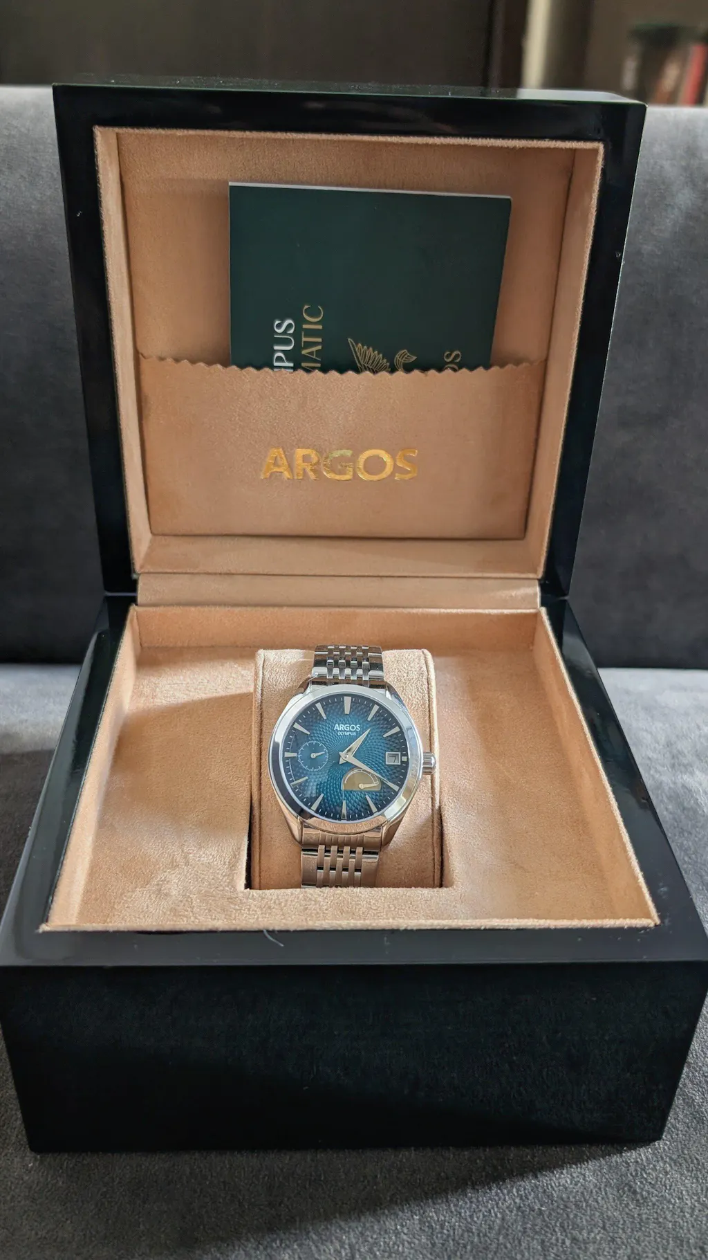 Presented in our signature high-gloss wooden box, finished with a deep polish and lined with soft suede. The golden Argos emblem crowns the case.