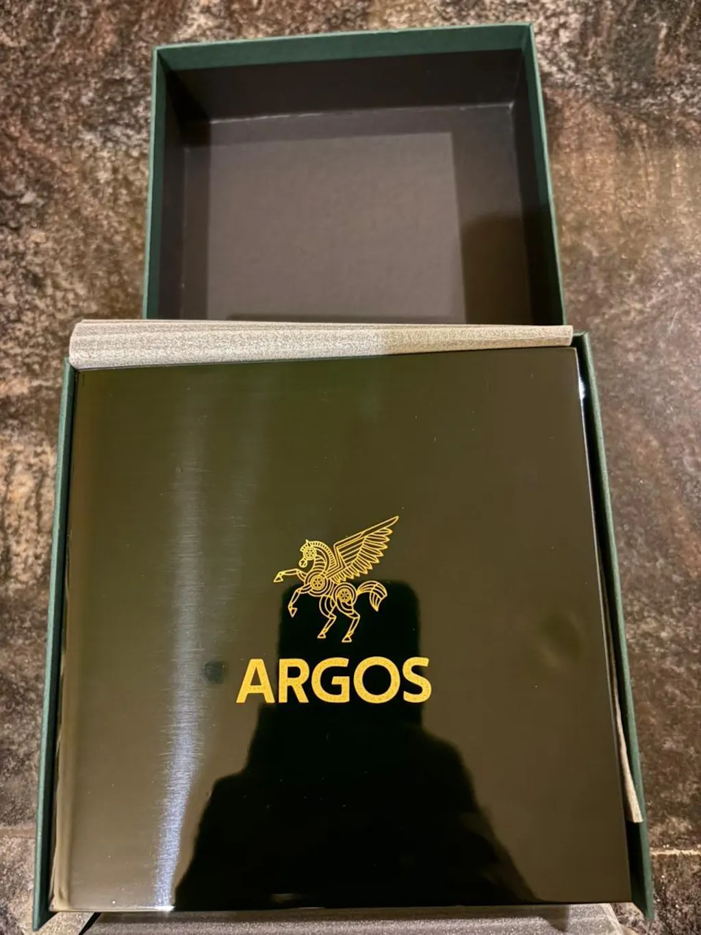 Presented in our signature high-gloss wooden box, finished with a deep polish and lined with soft suede. The golden Argos emblem crowns the case.
